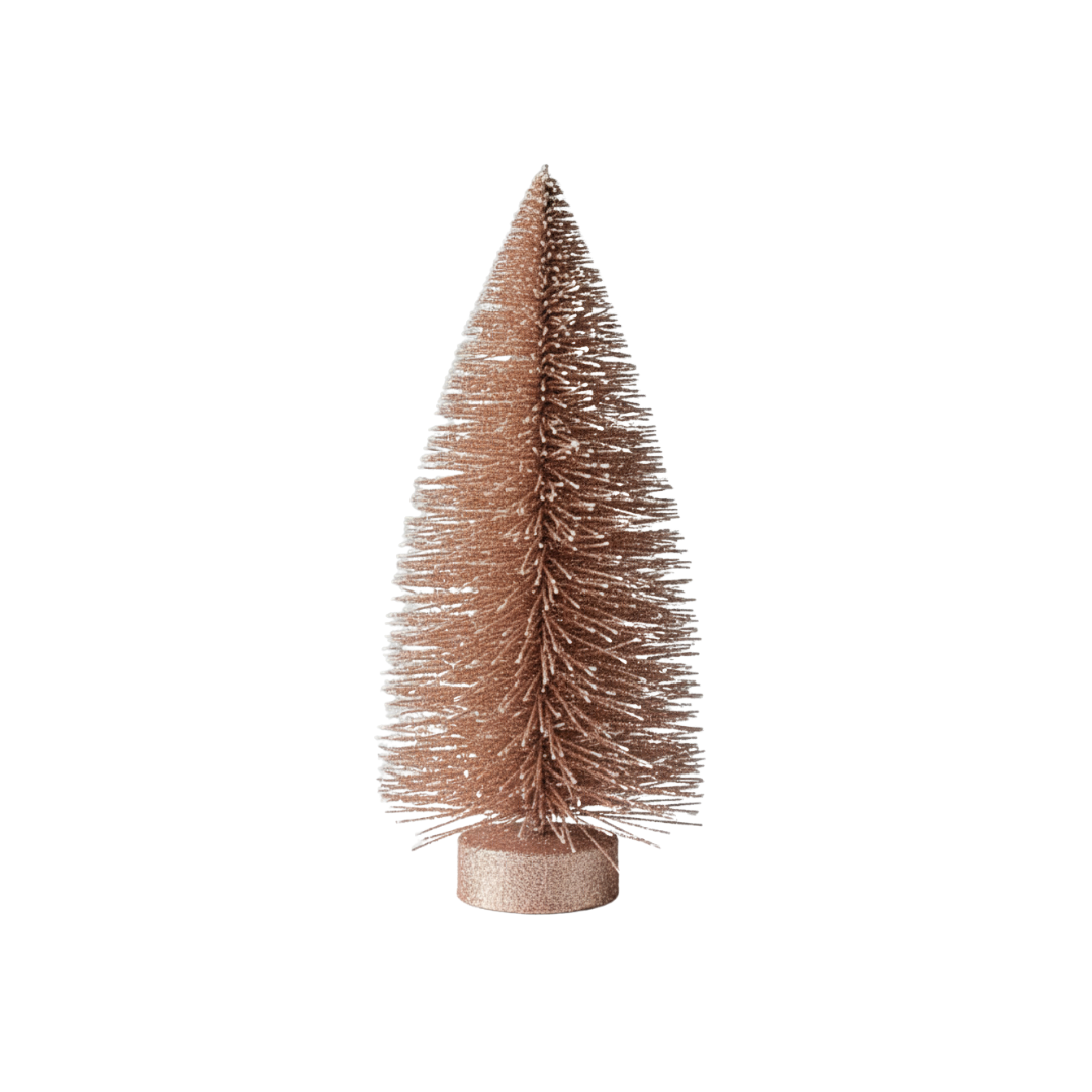 Árvore de natal compacta em rose gold, ideal para decorar mesas, prateleiras e pequenos espaços. Com 15cm de altura, oferece elegância e sofisticação ao ambiente festivo sem ocupar muito espaço.