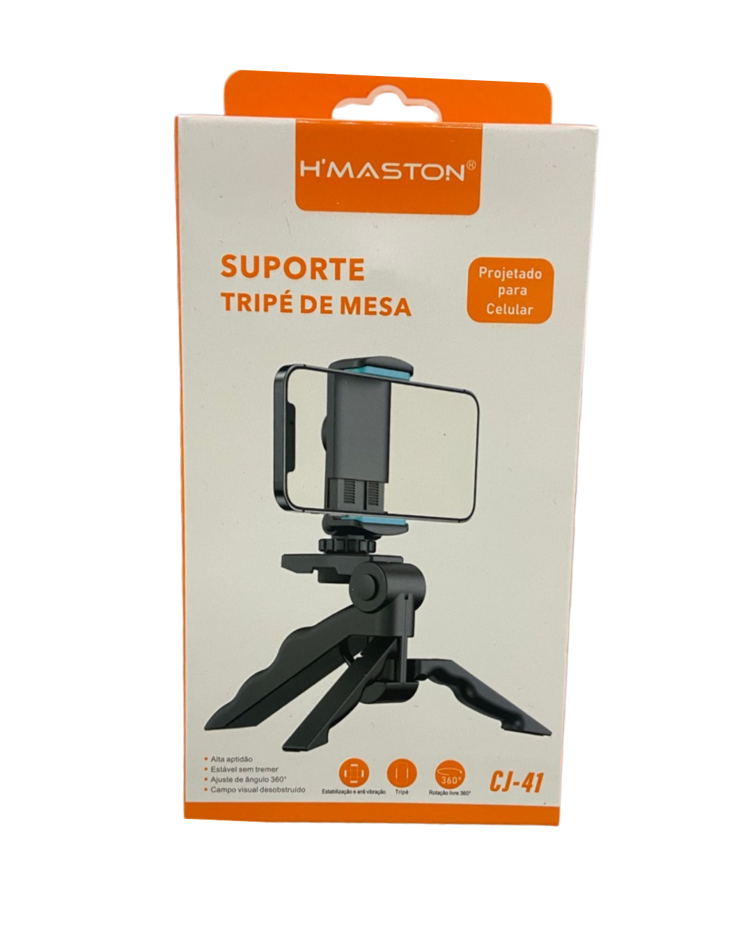 Com um tripé reforçado, este suporte de mesa oferece uma base estável que se destaca por sua robustez visual. A estrutura é projetada para evitar balanços, proporcionando um visual de confiança e segurança. Essa característica não só melhora a experiência de uso como também confere um aspecto moderno e atrativo ao produto.