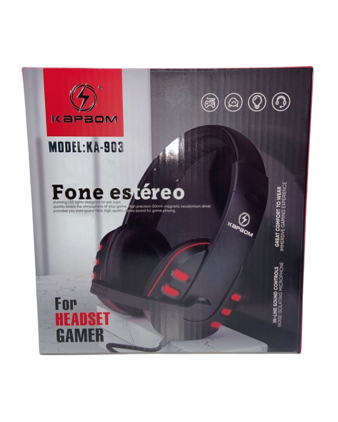 O driver de neodímio magnético de 50 mm de alta precisão fornece campo sonoro vívido e som estéreo de alta qualidade para jogos. ESPECIFICAÇÃO Tipo: Ao ar livre, dinâmico Unidade de acionamento: 40 mm de diâmetro capacidade de manuseio de energia: 50 mW Impedância: 32 ohms a 1 KHz 20-20000HZSensibilidade: 115 db mW Resposta de frequência: 20-20000HZCabo: 1,2 M com plugue estéreo de 3,5 mmObs.