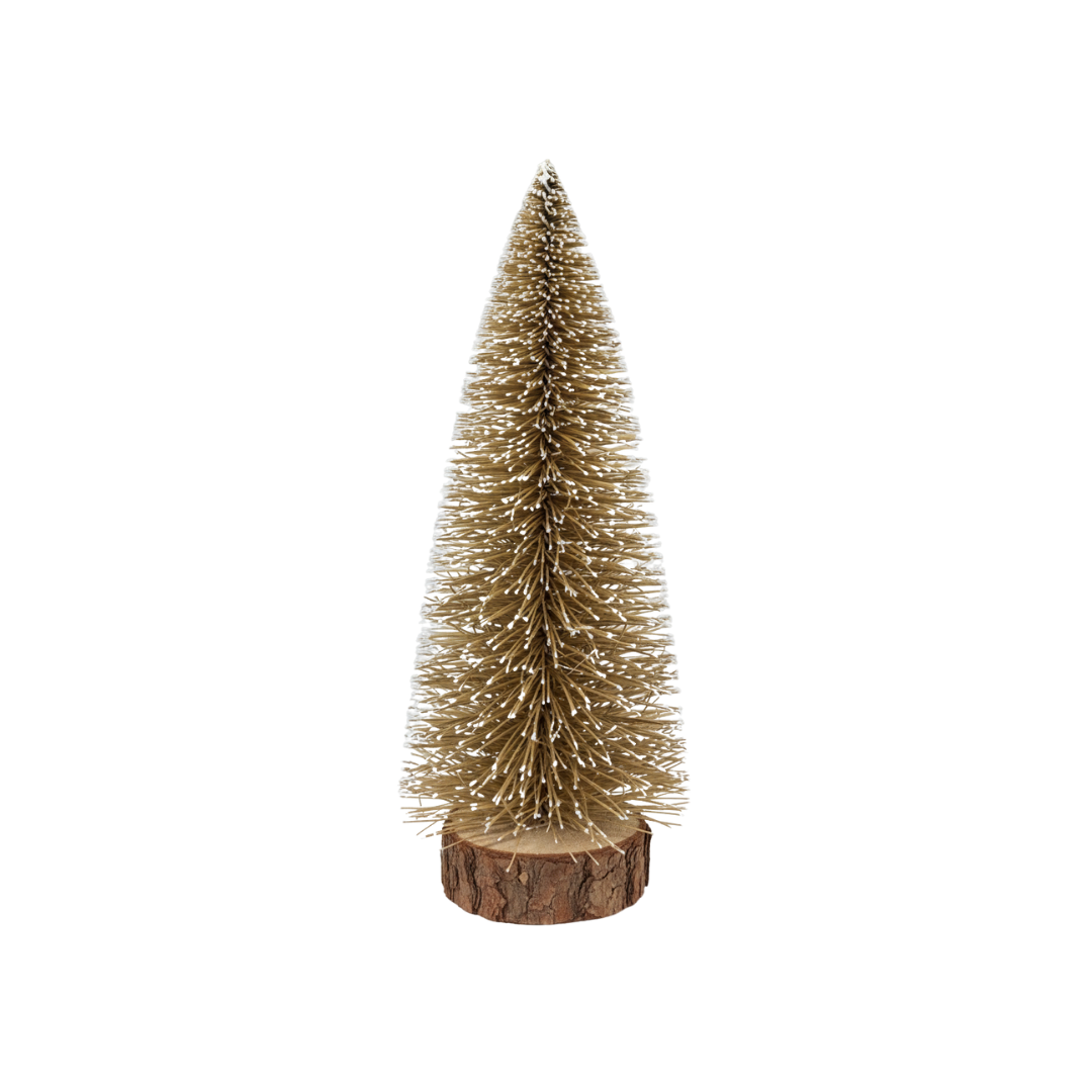 Mini Pinheiro de Natal com acabamento efeito madeira, medindo 15 cm de altura. Peça decorativa compacta e versátil, ideal para complementar ambientes pequenos, prateleiras ou criar composições temáticas.